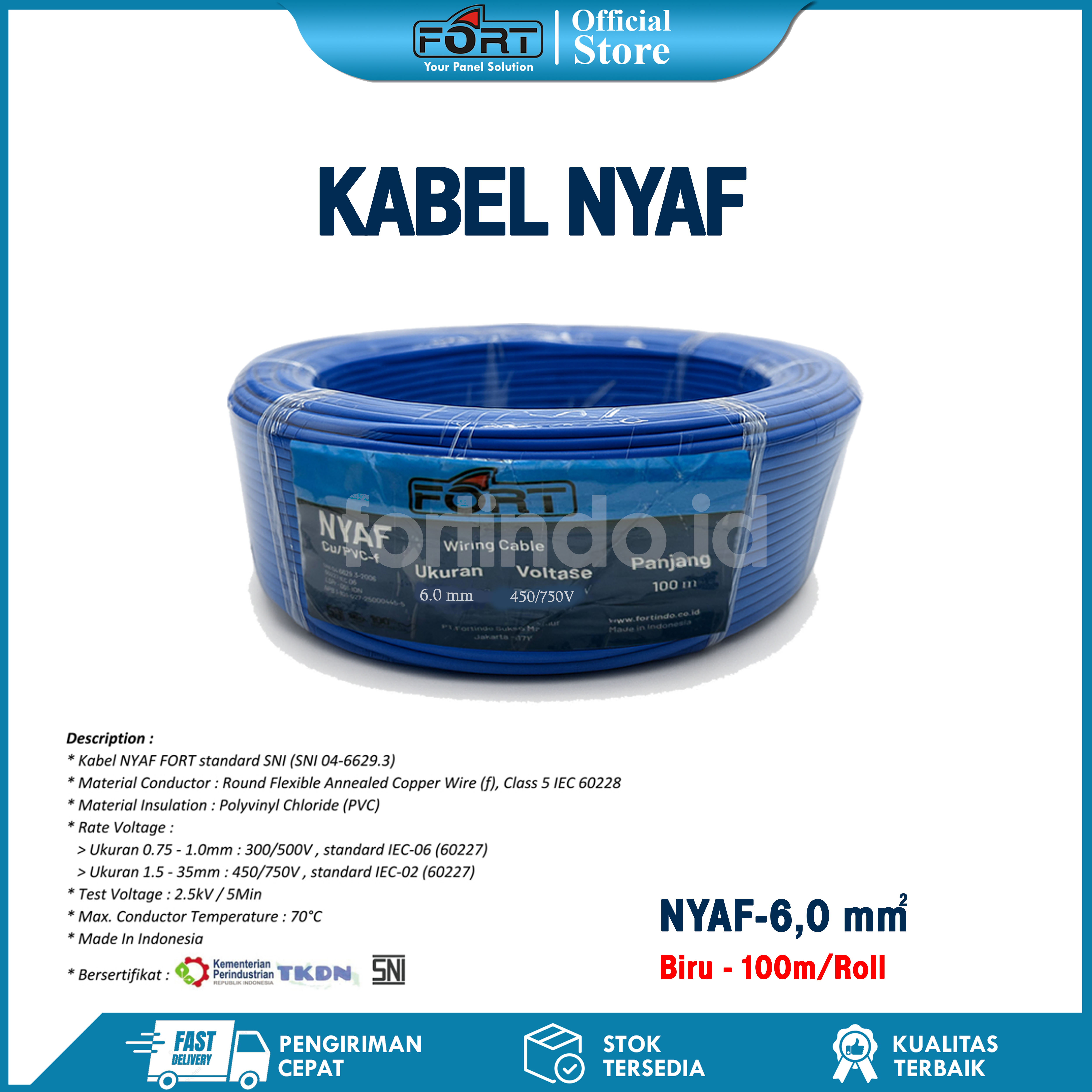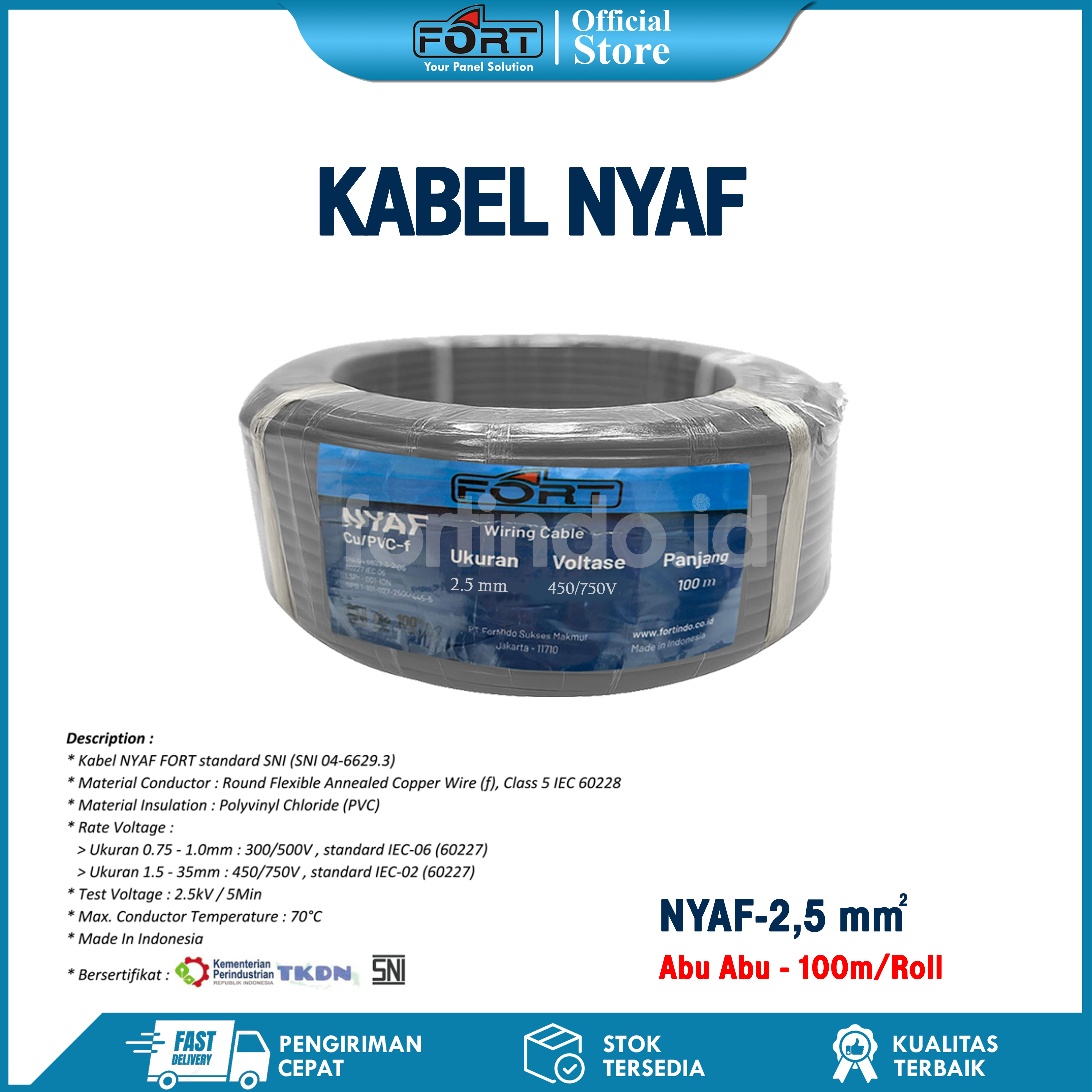 Kabel Wiring NYAF-25 Hitam Cabel SNI FORT