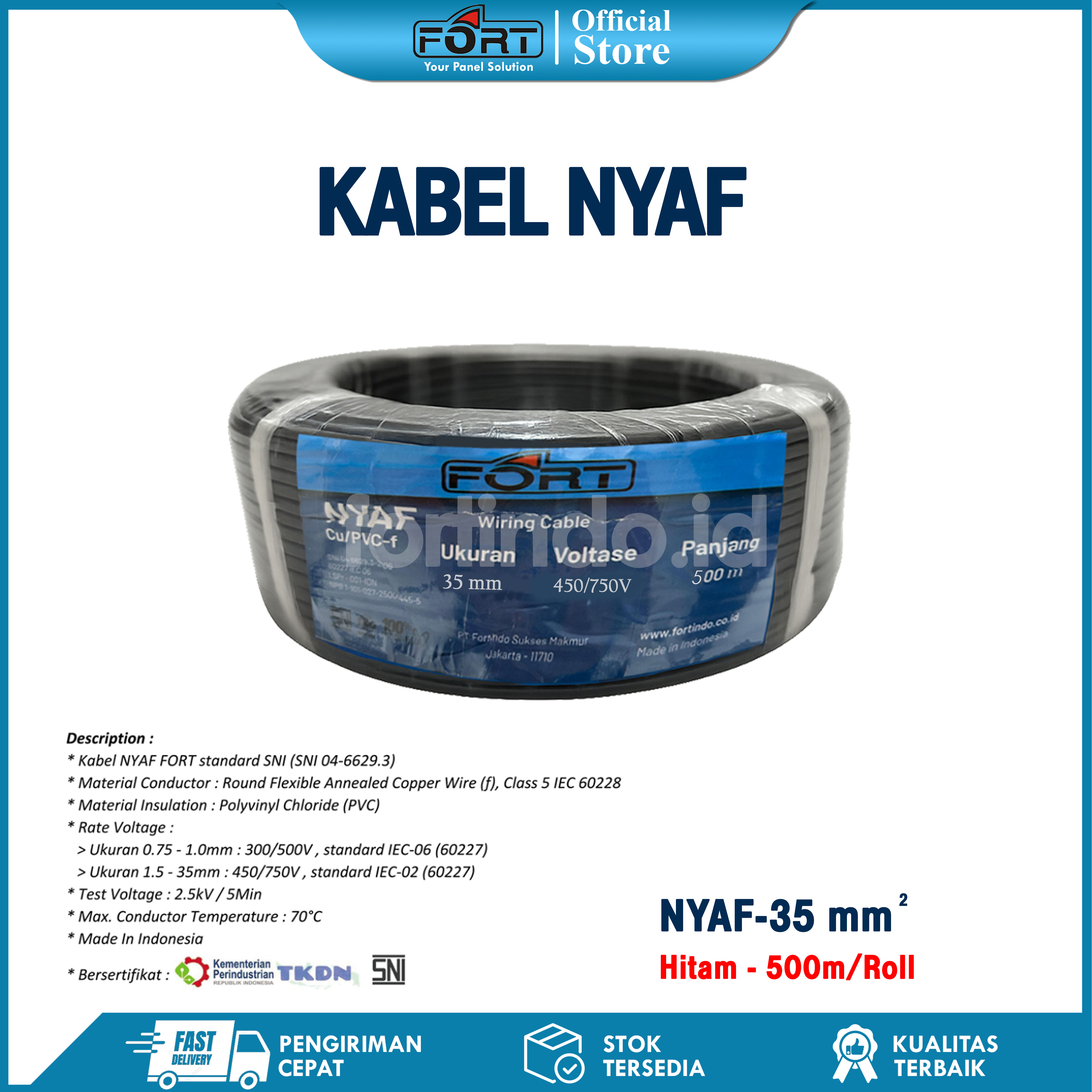 Kabel Wiring NYAF-35 Hitam Cabel SNI FORT